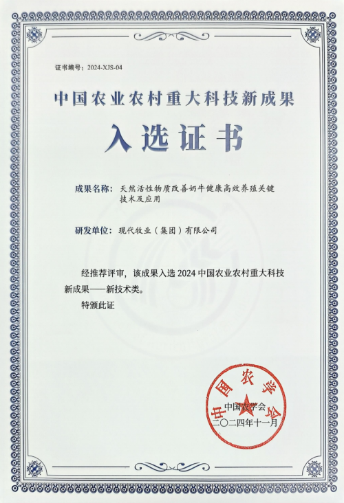 这不仅是业界对现代牧业长期以来在奶牛养殖领域科技创新的肯定,更是集团对推动畜牧业高质量发展坚定承诺的践行。