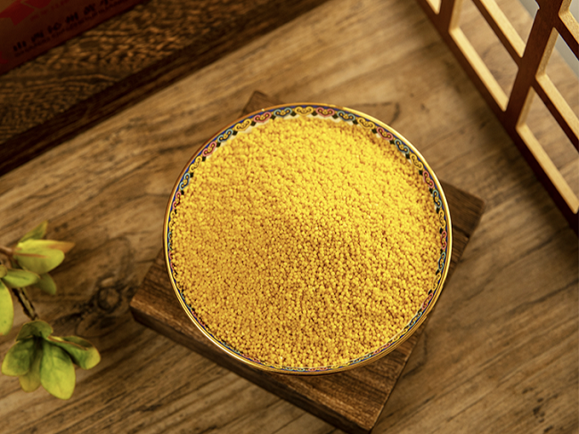 独特的产地环境优势和严格的生产质量管理,造就了沁州®沁州黄®小米卓越的品质,赢得了广大消费者交口称赞的良好口碑。沁州®沁州黄®小米突出了原生态、原产地的特色,颗粒密致,色泽透亮,营养丰富,熬粥口感黏糯,米香四溢。所含的氨基酸成分均衡,维生素、叶黄素等多种营养素均高于普通小米,维生素B1含量是大米的两倍,素有“金珠不换”之美誉。